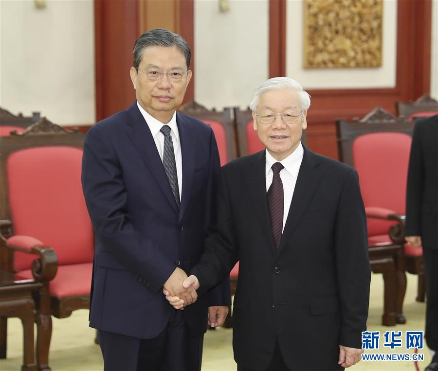 會(huì)見阮富仲時(shí),趙樂際首先轉(zhuǎn)達(dá)了習(xí)近平總書記的親切問候。趙樂際說,在兩黨總書記親自引領(lǐng)下,兩黨兩國(guó)關(guān)系持續(xù)健康穩(wěn)定發(fā)展。我此訪就是落實(shí)兩黨總書記達(dá)成的重要共識(shí),按照“十六字”方針和“四好”精神,加強(qiáng)戰(zhàn)略溝通,密切高層交往,促進(jìn)務(wù)實(shí)合作,推動(dòng)中越全面戰(zhàn)略合作伙伴關(guān)系邁上新臺(tái)階。阮富仲請(qǐng)趙樂際轉(zhuǎn)達(dá)對(duì)習(xí)近平總書記的良好祝愿,誠摯感謝習(xí)近平總書記委托趙樂際同志代表中共中央吊唁越南國(guó)家主席陳大光。阮富仲表示,當(dāng)前越中關(guān)系處于歷史最好時(shí)期,中國(guó)的發(fā)展成就不僅造福中國(guó)人民,也對(duì)越南國(guó)家發(fā)展和越中關(guān)系發(fā)展發(fā)揮重要促進(jìn)作用。越方愿加強(qiáng)兩黨理論創(chuàng)新和實(shí)踐經(jīng)驗(yàn)交流,全面有效落實(shí)高層共識(shí),深化各領(lǐng)域合作,不斷豐富越中傳統(tǒng)友好合作關(guān)系的時(shí)代內(nèi)涵。