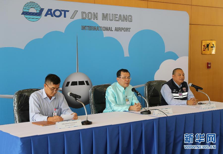 9月29日,在泰國曼谷廊曼機場,機場管理局局長素提拉瓦(中)在發(fā)布會上發(fā)言。 新華社記者張可任攝