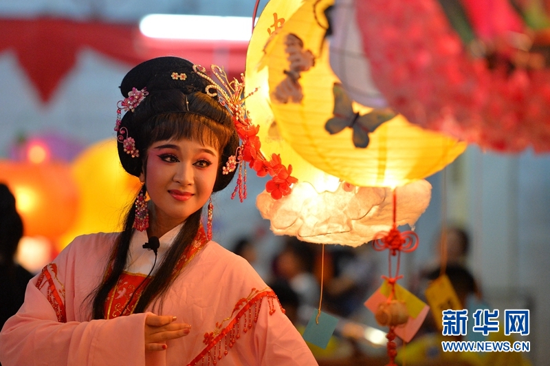 9月24日晚,文萊華人社團(tuán)在斯里巴加灣市中心舉辦慶中秋燈會(huì)和傳統(tǒng)戲曲表演,吸引民眾駐足觀賞。圖為閩劇團(tuán)演員在燈會(huì)上表演傳統(tǒng)戲曲。杰弗里·黃攝