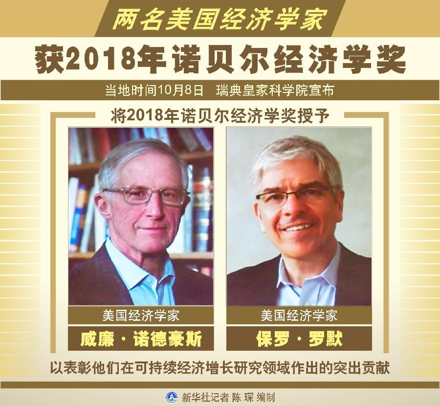 新華社斯德哥爾摩10月8日電(記者和苗 付一鳴)瑞典皇家科學院8日宣布,將2018年諾貝爾經(jīng)濟學獎授予美國經(jīng)濟學家威廉·諾德豪斯和保羅·羅默,以表彰他們在可持續(xù)經(jīng)濟增長研究領(lǐng)域作出的突出貢獻。