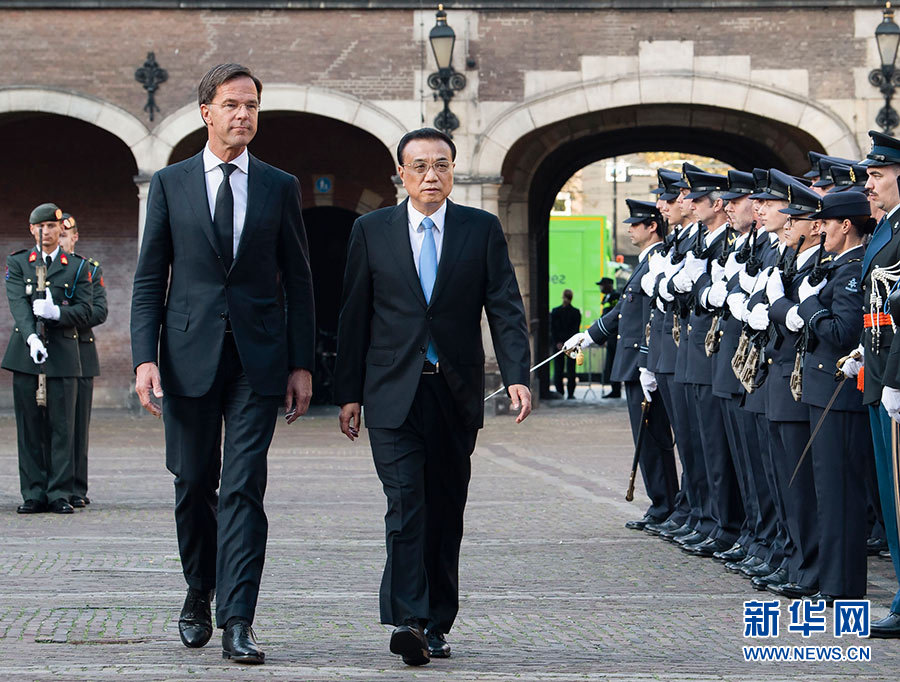 當(dāng)?shù)貢r(shí)間10月15日上午,國(guó)務(wù)院總理李克強(qiáng)在海牙首相府同荷蘭首相呂特舉行會(huì)談。這是會(huì)談前,呂特在海牙議會(huì)大廈廣場(chǎng)為李克強(qiáng)舉行隆重歡迎儀式。 新華社記者 李濤 攝