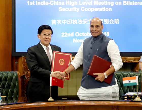 10月22日,中國與印度首次執(zhí)法安全高級別會晤在新德里舉行。國務委員、公安部部長趙克志與印度內(nèi)政部部長辛格共同簽署了《中華人民共和國公安部與印度共和國內(nèi)政部合作協(xié)議》。