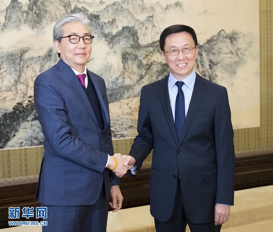 11月6日,中共中央政治局常委、國務(wù)院副總理韓正在北京中南海紫光閣會見泰國副總理頌奇?!⌒氯A社記者 黃敬文 攝
