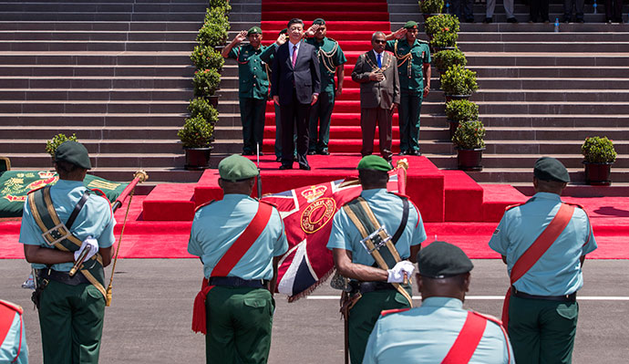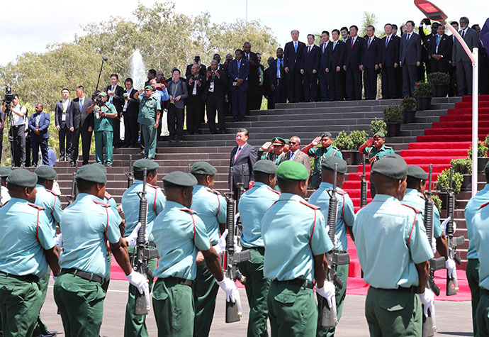 11月16日,國(guó)家主席習(xí)近平在莫爾茲比港會(huì)見巴布亞新幾內(nèi)亞總督達(dá)達(dá)埃。會(huì)見開始前,達(dá)達(dá)埃在議會(huì)大廈前廣場(chǎng)為習(xí)近平舉行隆重歡迎儀式。新華社記者 費(fèi)茂華 攝