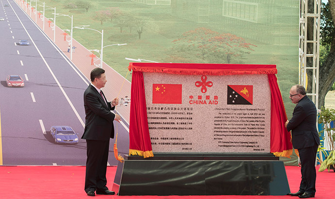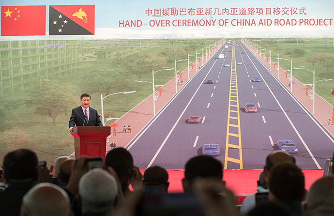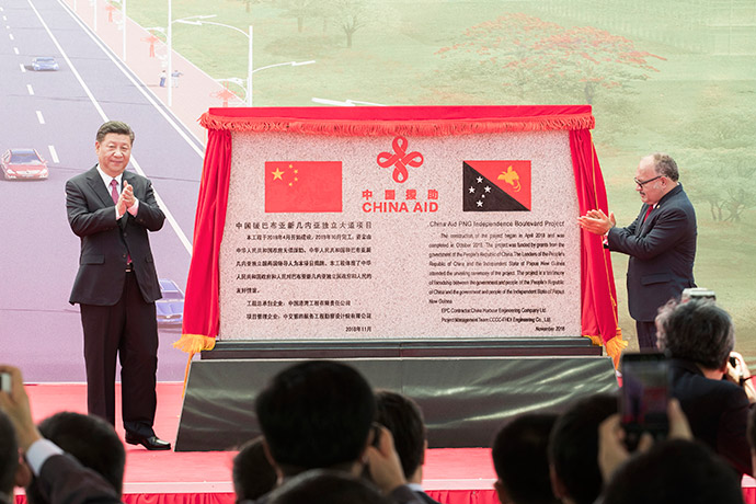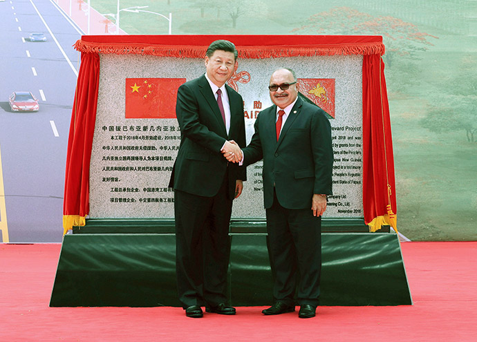11月16日,國(guó)家主席習(xí)近平在莫爾茲比港和巴布亞新幾內(nèi)亞總理奧尼爾共同出席中國(guó)援建的獨(dú)立大道移交啟用儀式。新華社記者 黃敬文 攝