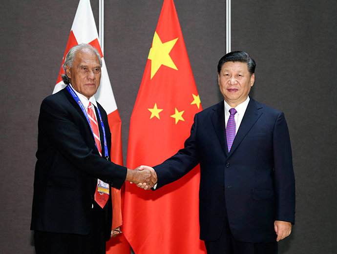 11月16日,國(guó)家主席習(xí)近平在莫爾茲比港分別會(huì)見建交太平洋島國(guó)領(lǐng)導(dǎo)人。這是習(xí)近平會(huì)見湯加首相波希瓦。新華社記者 丁林 攝