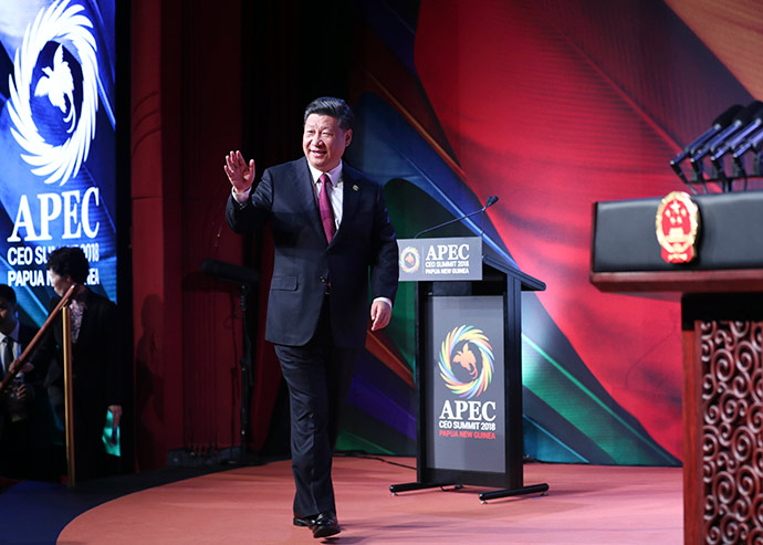 11月17日,國家主席習(xí)近平應(yīng)邀出席在巴布亞新幾內(nèi)亞莫爾茲比港舉行的亞太經(jīng)合組織工商領(lǐng)導(dǎo)人峰會(huì)并發(fā)表題為《同舟共濟(jì)創(chuàng)造美好未來》的主旨演講。新華社記者 鞠鵬 攝