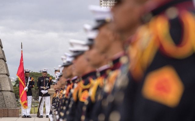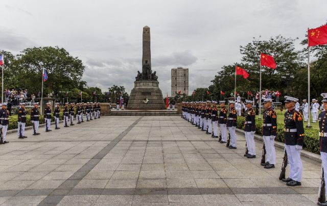 杜特爾特為習主席在總統(tǒng)府前草坪舉行了隆重歡迎儀式。習近平在杜特爾特陪同下檢閱儀仗隊。