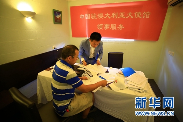 ?。玻橙眨袊v澳大利亞使館的五名官員從首都堪培拉來到4000公里以外位于澳大利亞北部的港口城市達(dá)爾文,就領(lǐng)事保護(hù)和教育等方面的問題同當(dāng)?shù)亓魧W(xué)生和華僑華人進(jìn)行交流并現(xiàn)場辦公。