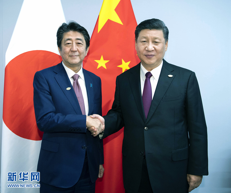 ——會見日本首相安倍晉三,指出雙方要建設性地把握好中日關系發(fā)展方向,在中日四個政治文件原則基礎上,共同開辟兩國關系新前景。