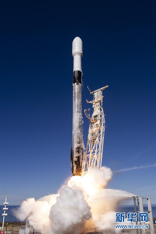 當(dāng)?shù)貢r間2018年12月3日,SpaceX的“獵鷹9”火箭在加州范登堡空軍基地成功發(fā)射,攜帶64顆衛(wèi)星升空。(圖片來源:東方IC)