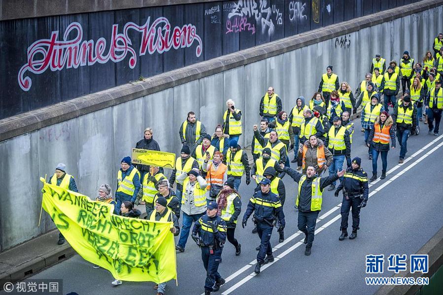 當(dāng)?shù)貢r間12月15日,荷蘭馬斯特里赫特,當(dāng)?shù)乇l(fā)“黃背心”抗議活動。(圖片來源:視覺中國)