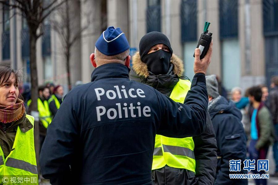 當(dāng)?shù)貢r間12月15日,比利時布魯塞爾,當(dāng)?shù)乇l(fā)“黃背心”抗議活動。 (圖片來源:視覺中國)