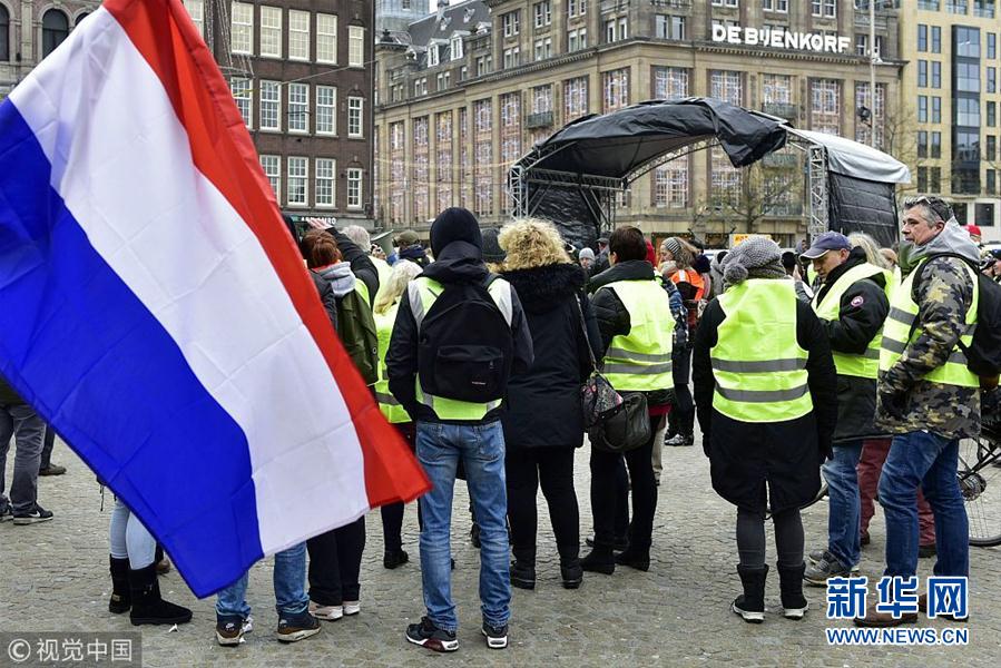 當(dāng)?shù)貢r間12月15日,荷蘭阿姆斯特丹,當(dāng)?shù)乇l(fā)“黃背心”抗議活動。(圖片來源:視覺中國)