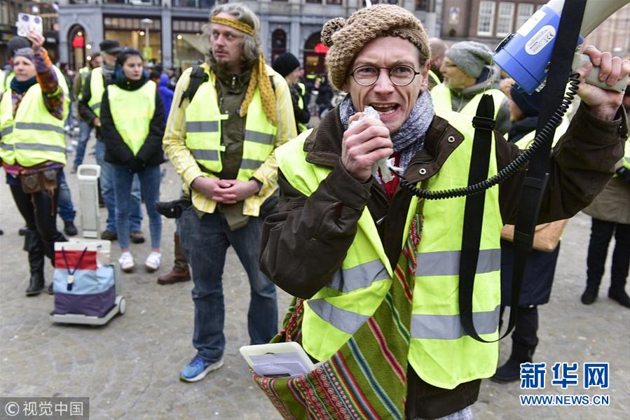 當(dāng)?shù)貢r(shí)間12月15日,荷蘭阿姆斯特丹,當(dāng)?shù)乇l(fā)“黃背心”抗議活動(dòng)。(圖片來源:視覺中國)