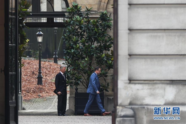 12月19日,比利時(shí)國王菲利普(左)在位于首都布魯塞爾的王宮送別前來會(huì)面的政要。新華社記者鄭煥松攝