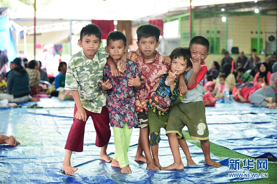 12月25日,幾名男孩在印度尼西亞萬丹省板底蘭縣的災(zāi)民安置點(diǎn)玩耍。新華社記者杜宇攝