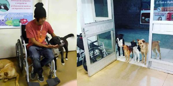 12月16日,巴西流浪漢塞薩爾凌晨求醫(yī),他的“家屬”——四只流浪狗趕來“陪護”。