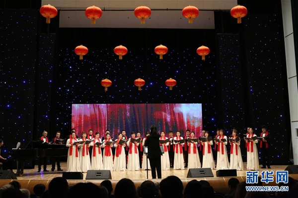 1月23日,在白俄羅斯首都明斯克,中國(guó)中央歌劇院的藝術(shù)家們?cè)凇皻g樂(lè)春節(jié)”歌舞晚會(huì)上演唱。新華社記者 魏忠杰 攝