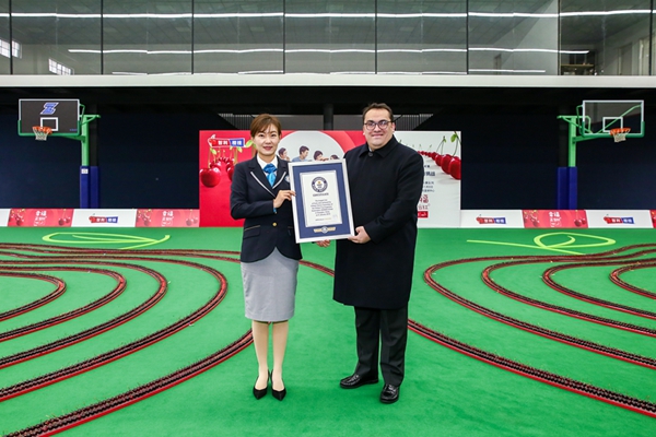 2019年1月9日,來自智利的24638個(gè)深紅色大櫻桃,漂洋過海來到中國上海,通過排列,組成了兩顆手牽手櫻桃的巨大圖案,創(chuàng)造了“最長的水果隊(duì)列”吉尼斯世界紀(jì)錄稱號。