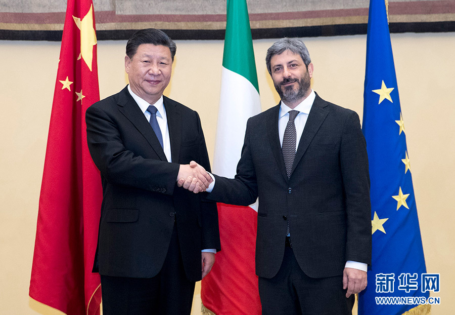3月22日,國家主席習(xí)近平在羅馬會(huì)見意大利眾議長菲科。新華社記者 王曄 攝