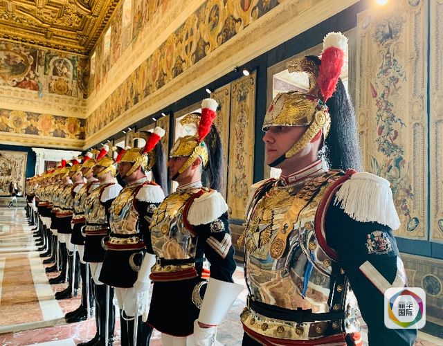 3月23日,意大利總統(tǒng)馬塔雷拉在總統(tǒng)府為國家主席習(xí)近平舉行隆重歡送儀式。圖為意大利禮兵列隊(duì)準(zhǔn)備歡送習(xí)近平。(新華社記者高潔攝)