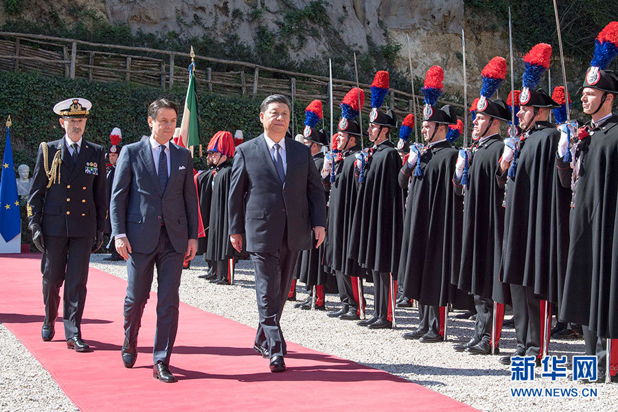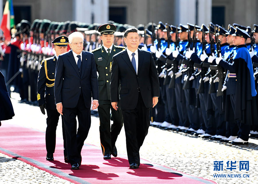 3月22日,國家主席習(xí)近平在羅馬同意大利總統(tǒng)馬塔雷拉舉行會(huì)談。會(huì)談前,馬塔雷拉總統(tǒng)為習(xí)近平舉行隆重歡迎儀式。(新華社記者謝環(huán)馳攝)