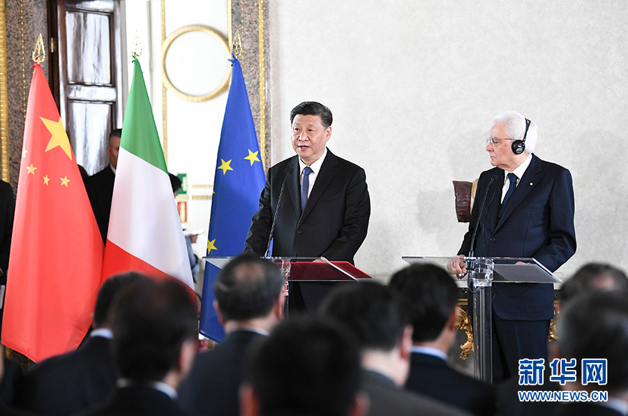 3月22日,國家主席習(xí)近平在羅馬同意大利總統(tǒng)馬塔雷拉舉行會(huì)談。(新華社記者謝環(huán)馳攝)