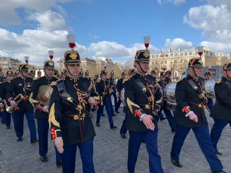 凱旋門星形廣場上,儀仗隊(duì)和軍樂團(tuán)整齊列隊(duì),靜候習(xí)近平主席的到來。新華社記者 高潔 攝