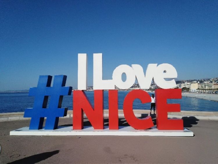 尼斯在恐怖襲擊重創(chuàng)后豎起“我愛尼斯”的標(biāo)志。2016年7月15日,習(xí)近平就尼斯恐襲事件向時(shí)任法國總統(tǒng)奧朗德致慰問電。新華社記者 饒愛民 攝