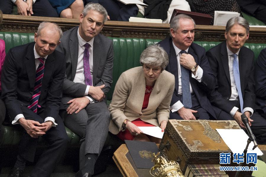 3月29日,在英國倫敦,英國首相特雷莎·梅(中)出席議會(huì)下院辯論。 新華社發(fā)(英國議會(huì)攝影師馬克·達(dá)菲攝)