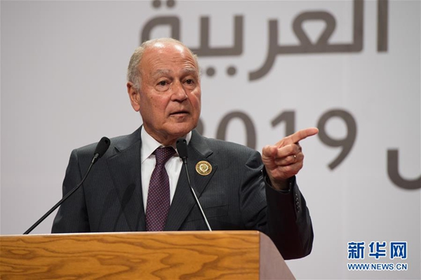3月31日,在突尼斯首都突尼斯市,阿拉伯國(guó)家聯(lián)盟秘書(shū)長(zhǎng)蓋特在記者招待會(huì)上講話。新華社記者 孟濤 攝