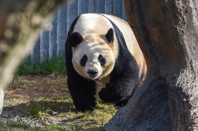 這是4月10日在丹麥哥本哈根動(dòng)物園熊貓館拍攝的大熊貓“星二”。(新華社記者 郭晨 攝)