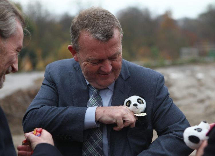 2017年11月16日,在丹麥?zhǔn)锥几绫竟?,丹麥?zhǔn)紫嗬鼓律鱿绫竟鶆?dòng)物園熊貓館奠基儀式。(新華社記者 石壽河 攝)