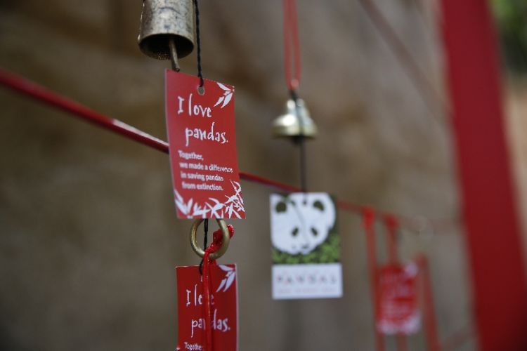 這是4月6日在美國(guó)圣迭戈動(dòng)物園“大熊貓友誼墻”拍攝的祝福簽。(新華社記者 李穎 攝)