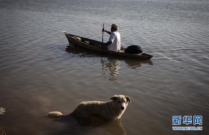 4月10日,在伊朗胡齊斯坦省,居民劃船出行。近期,伊朗境內(nèi)持續(xù)洪澇災(zāi)害。新華社發(fā)(艾哈邁德·哈拉比薩斯 攝)