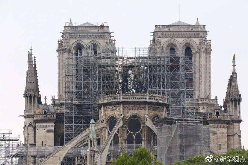 ??? 巴黎圣母院塔尖在大火中倒塌?