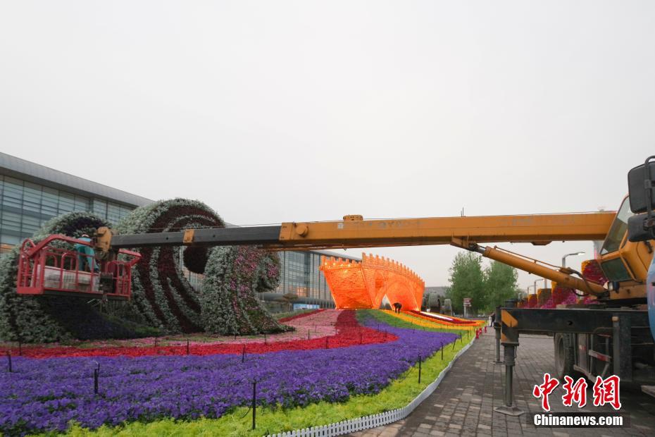 4月18日晚,北京奧林匹克公園內(nèi)的“絲路金橋”主題景觀點亮燈光,附屬的花壇景觀正在緊張施工?!敖z路金橋”由中國藝術(shù)家舒勇創(chuàng)作,長28米、高6米、寬4米,是以“一帶一路”倡議為語境的大型藝術(shù)作品,此次作為第二屆“一帶一路”國際合作高峰論壇的主題花壇亮相。中新社記者 賈天勇 攝