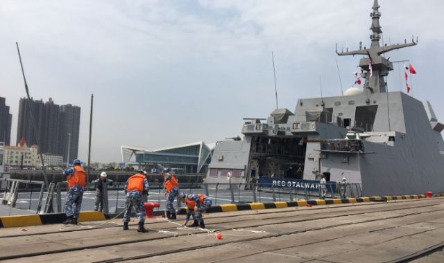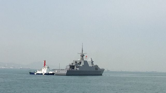 19日10時(shí)許,新加坡海軍“堅(jiān)強(qiáng)”號(hào)護(hù)衛(wèi)艦緩緩駛?cè)肭鄭u大港碼頭。這是參加中國(guó)人民解放軍海軍成立70周年多國(guó)海軍活動(dòng)到訪的第一艘外國(guó)海軍艦艇。新華社記者梅世雄 攝