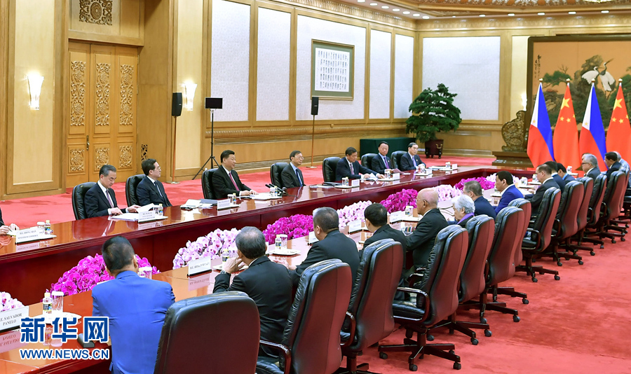 習(xí)近平指出,過去3年,中菲關(guān)系完成轉(zhuǎn)圜、鞏固、提升“三部曲”,步入新的發(fā)展階段。實踐證明,中菲堅持睦鄰友好順應(yīng)歷史潮流,符合人民期待,是唯一正確選擇。我每次同你交談都推心置腹,坦誠相見,為的是我們兩國和兩國人民的福祉。我愿同總統(tǒng)先生一道,繼續(xù)從戰(zhàn)略高度和長遠角度把握好兩國關(guān)系正確航向。雙方要堅持睦鄰友好的大方向,共創(chuàng)攜手發(fā)展的大格局,發(fā)揮妥處分歧的大智慧,把握世界發(fā)展的大潮流。共建“一帶一路”倡議同總統(tǒng)先生提出的“大建特建”規(guī)劃高度契合,雙方合作卓有成效。中方愿同菲方深化發(fā)展戰(zhàn)略對接,在共建“一帶一路”框架內(nèi)打造合作亮點,深化中菲兩國以及地區(qū)各國聯(lián)通和發(fā)展。雙方要重信守諾,發(fā)揚伙伴精神,保持南海和平穩(wěn)定,加強海上合作。中方將繼續(xù)在禁毒、反恐等問題上全力支持菲律賓人民的正義事業(yè)。