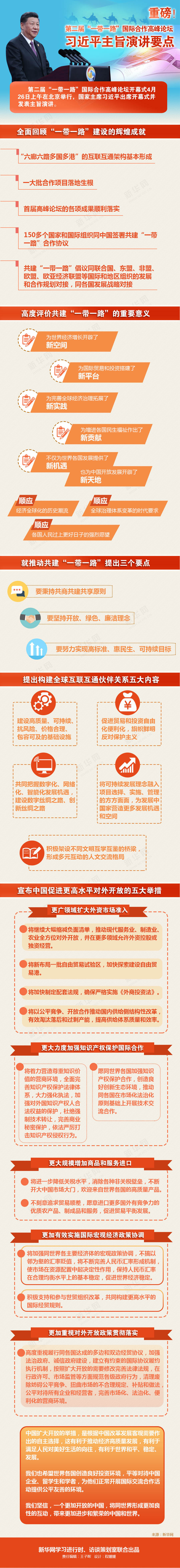 兩年前的5月,首屆高峰論壇擘畫了共建“一帶一路”的合作藍(lán)圖;兩年后的今天,習(xí)近平主席在演講中闡釋了推動(dòng)共建“一帶一路”邁向高質(zhì)量發(fā)展的前進(jìn)方向,宣示了中國一系列重大改革開放新舉措。