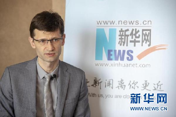 4月26日,白俄羅斯中國問題專家蘇加克接受新華網(wǎng)采訪。新華網(wǎng)發(fā) 郭小天 攝