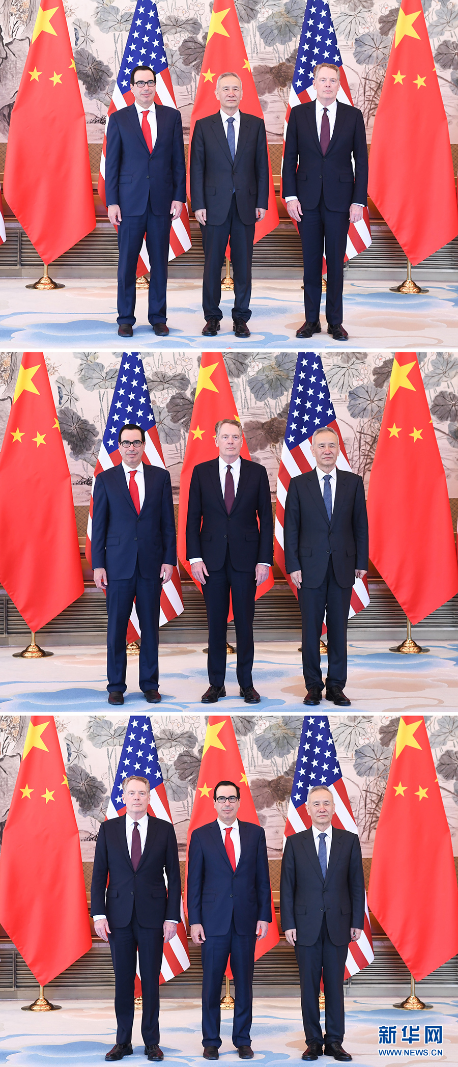4月30日至5月1日,中共中央政治局委員、國務(wù)院副總理、中美全面經(jīng)濟(jì)對話中方牽頭人劉鶴與美國貿(mào)易代表萊特希澤、財(cái)政部長姆努欽在北京舉行第十輪中美經(jīng)貿(mào)高級別磋商(拼版照片)。 新華社記者申宏、翟健嵐攝
