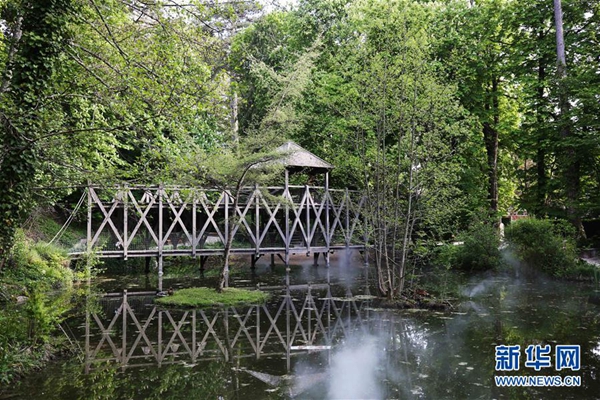 這是5月1日在法國(guó)昂布瓦茲的克洛·呂斯城堡拍攝的達(dá)·芬奇的花園。新華社記者 高靜 攝