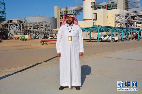 3月5日,沙特阿拉伯青年艾哈邁德·薩赫利在延布三期項(xiàng)目現(xiàn)場(chǎng)留影。新華社發(fā)