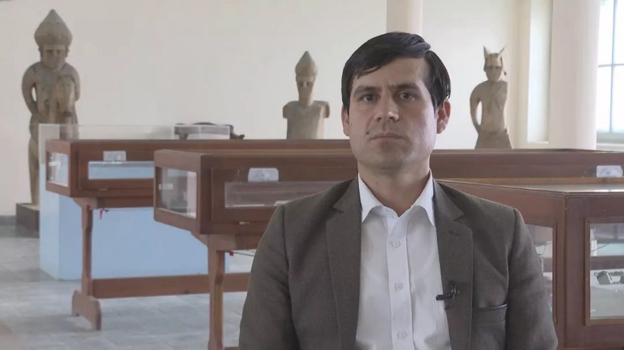 圖為阿富汗國家博物館首席策展人阿伊努丁·賽達(dá)喀特。(視頻截圖)