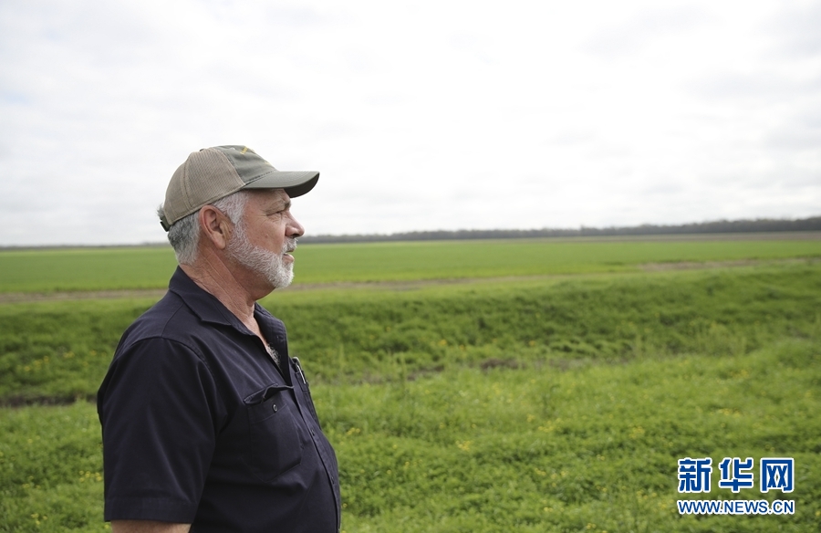 農(nóng)場(chǎng)主雷·謝克斯奈德在美國(guó)路易斯安那州西巴吞魯日堂區(qū)的農(nóng)場(chǎng)農(nóng)田邊(3月1日攝)。 新華社記者 王迎 攝