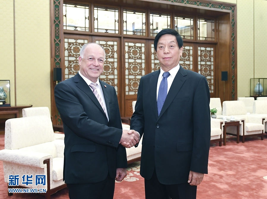 6月10日,全國人大常委會委員長栗戰(zhàn)書在北京會見以奧地利聯(lián)邦議會議長英戈·阿佩為團(tuán)長的奧中友協(xié)高級代表團(tuán)。 新華社記者 燕雁 攝