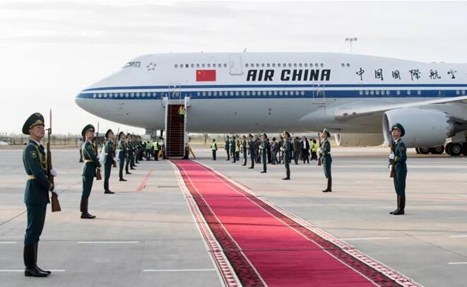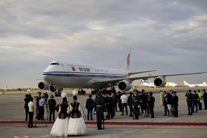 6月12日,國家主席習(xí)近平乘專機抵達(dá)比什凱克,開始對吉爾吉斯共和國進(jìn)行國事訪問并出席上海合作組織成員國元首理事會第十九次會議。吉爾吉斯斯坦總統(tǒng)熱恩別科夫在舷梯旁熱情迎接。新華社記者 謝環(huán)馳 攝