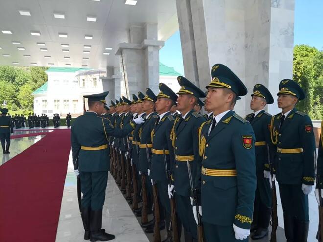 檢閱儀仗隊時,習(xí)近平主席走到儀仗隊中央,用吉爾吉斯語向儀仗隊員問候:戰(zhàn)士們好!儀仗隊員用吉爾吉斯語回答:歡迎您!